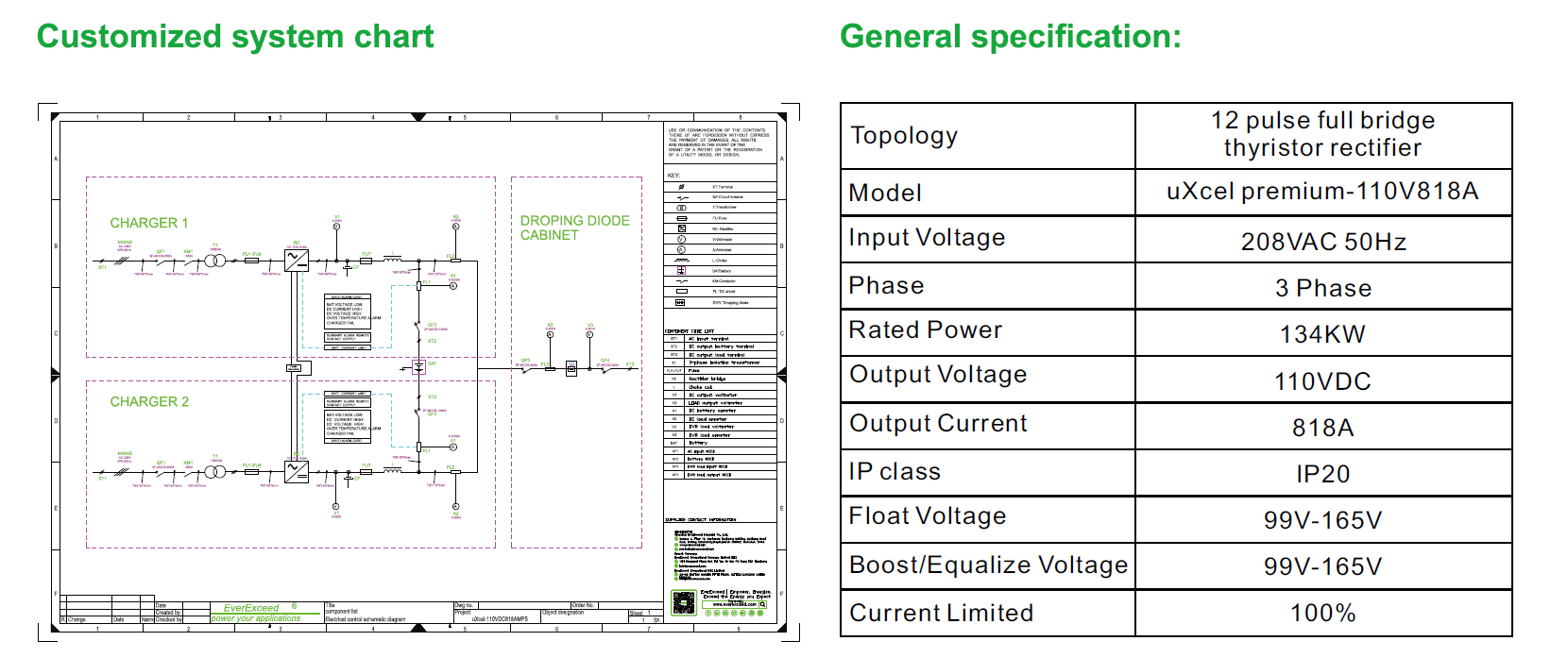 Bộ sạc ắc quy công nghiệp cao cấp uXcel 30 chiếc này được tùy chỉnh để trang bị thêm cho thiết bị điện của trạm biến áp tại Cộng hòa Dominica. Bộ sạc công nghiệp cung cấp điện cho các thiết bị điều khiển và hệ thống giám sát quản lý hoạt động của trạm biến áp. Chúng không chỉ đáp ứng nhu cầu điện năng của thiết bị mà còn đảm bảo hoạt động của thiết bị trong trường hợp khẩn cấp. Bộ sạc công nghiệp còn cải thiện cấu trúc nguồn điện của trạm biến áp và tăng tính ổn định của hệ thống phân phối điện, góp phần quản lý năng lượng tốt hơn và sử dụng tài nguyên hiệu quả hơn.