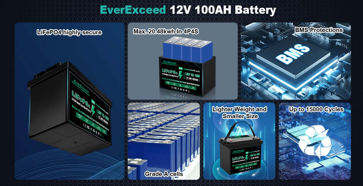 Pin dung lượng lớn, thích hợp sử dụng trong xe RV, cắm trại, du thuyền, thuyền đánh cá, xe golf, hệ thống năng lượng mặt trời, v.v.