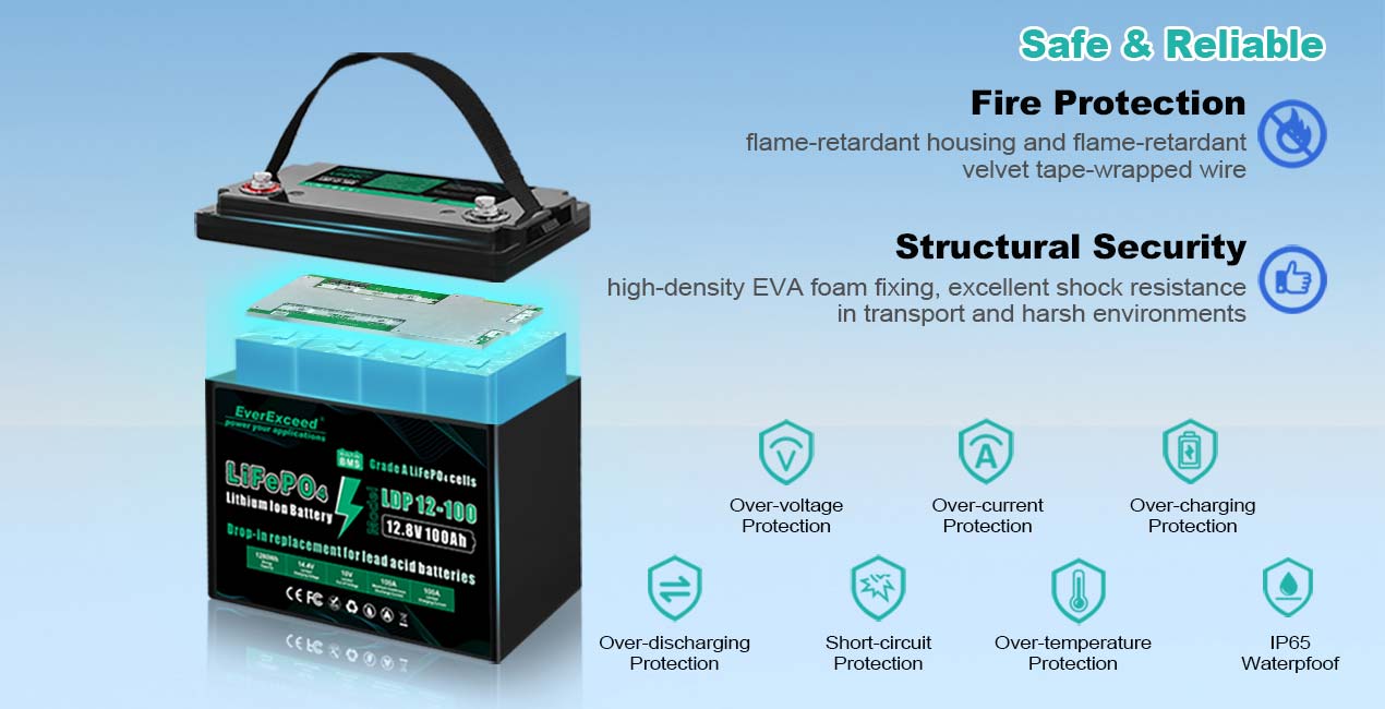 Chúng tôi sử dụng pin lithium sắt photphat, không gây cháy, không nổ, phạm vi nhiệt độ hoạt động rộng, đảm bảo an toàn khi sử dụng.