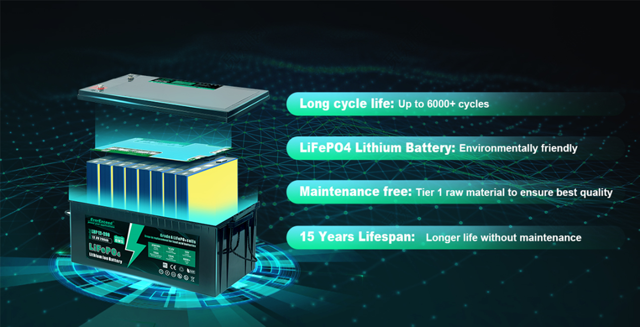 Pin dung lượng lớn, thích hợp sử dụng trong xe RV, cắm trại, du thuyền, thuyền đánh cá, xe golf, hệ thống năng lượng mặt trời, v.v.