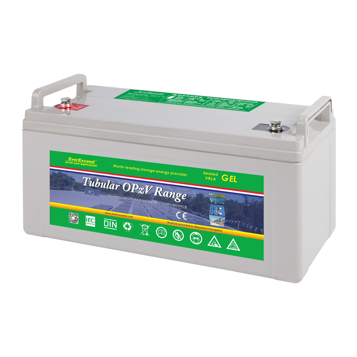 Pin chu kỳ sâu 12V Pin Pin hình ống Opzv cho năng lượng mặt trời