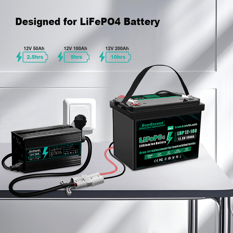 Bộ sạc pin Lithium EverExceed được thiết kế để sạc nhanh, hiệu quả và đáng tin cậy cho pin LiFePO₄ và các loại pin lithium khác