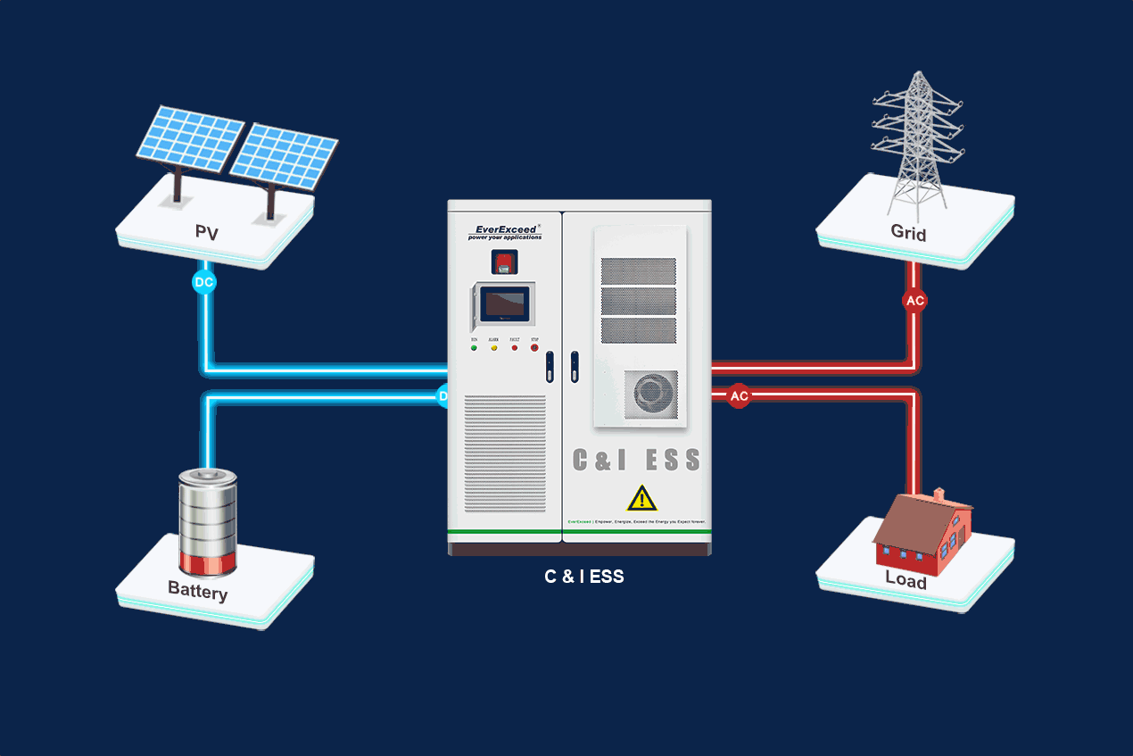 Hệ thống lưu trữ pin thương mại thu thập, lưu trữ và cung cấp điện khi cần thông qua bốn giai đoạn chính:
