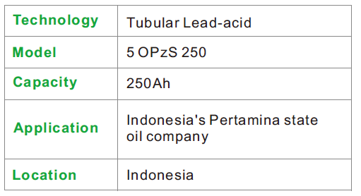 EverExceed đã cung cấp thành công hệ thống pin OPzS cho Pertamina, phục vụ các dự án dầu khí quốc gia của Indonesia. Với kế hoạch thay thế hai dãy pin bổ sung, Pertamina đang đẩy nhanh quá trình chuyển đổi sang các giải pháp lưu trữ năng lượng an toàn hơn, bền bỉ hơn và hiệu quả hơn của EverExceed. Được chế tạo với công nghệ tấm ống, pin OPzS của EverExceed chỉ cần bảo trì tối thiểu, tuổi thọ cao và hiệu suất đáng tin cậy ngay cả trong điều kiện nhiệt độ cao hoặc lưới điện không ổn định.