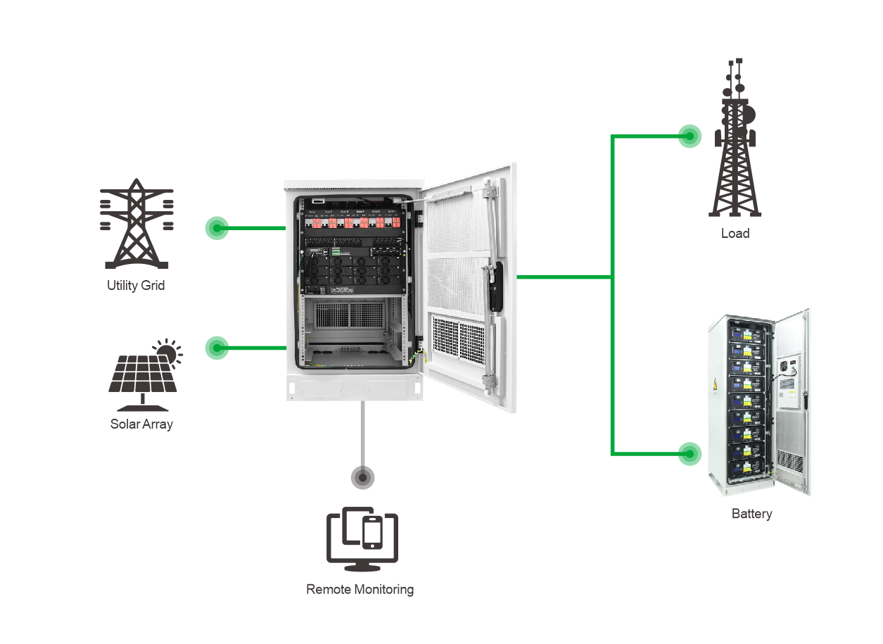 Quản lý năng lượng hiệu suất cao: Mô-đun chỉnh lưu đạt hệ số công suất đầu vào 0,99 và hiệu suất trên 96%, trong khi mô-đun quang điện cũng đạt hiệu suất 96%. Cả hai đều có thiết kế 1U nhỏ gọn với mật độ công suất cao và hiệu suất tiết kiệm năng lượng.