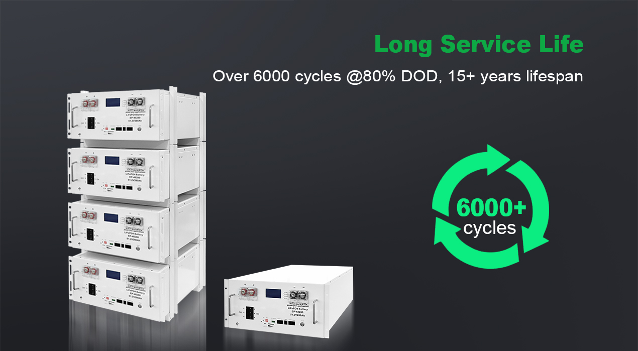 Pin LiFePO4 loại A, hơn 6000 chu kỳ, tuổi thọ 15 năm. Bình chữa cháy tích hợp để tăng thêm sự an toàn. Được chứng nhận và thân thiện với môi trường.