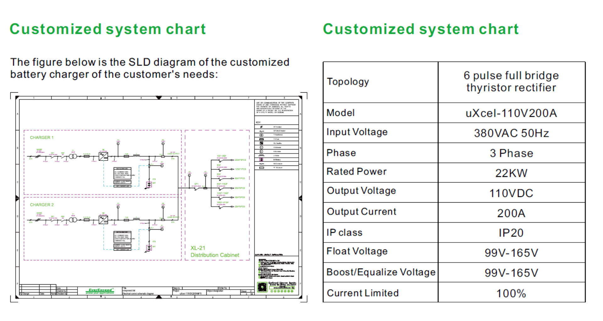 Bộ sạc pin công nghiệp 110V 200A này được thiết kế riêng cho một dự án cải tạo nhà máy giấy tại Pakistan. Nhà máy giấy được trang bị nhiều thiết bị DC như bộ điều khiển và đo lường với chức năng chuyển mạch từ xa, đo từ xa và giám sát. Các bộ sạc công nghiệp này đảm bảo nguồn điện đáng tin cậy trong trường hợp mất điện, giúp duy trì sản xuất liên tục, cải thiện chất lượng giấy và giảm thiểu các lỗi do biến động điện áp.