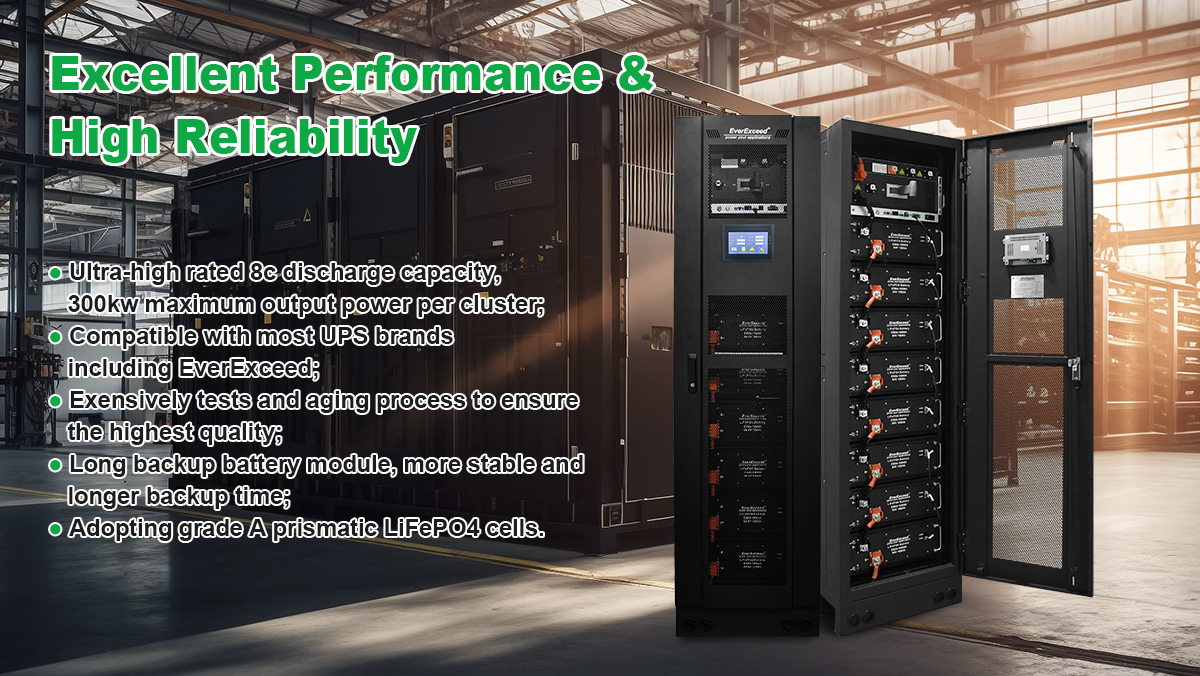 Cung cấp khả năng xả 8C cực nhanh, khả năng tương thích rộng với UPS và thời gian sao lưu dài với pin LiFePO4 loại A cho độ tin cậy và hiệu suất cao.