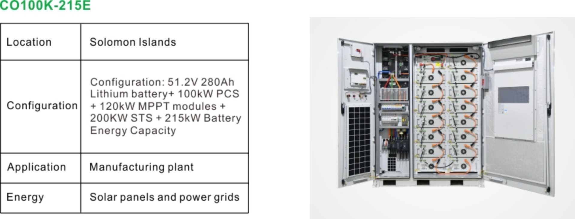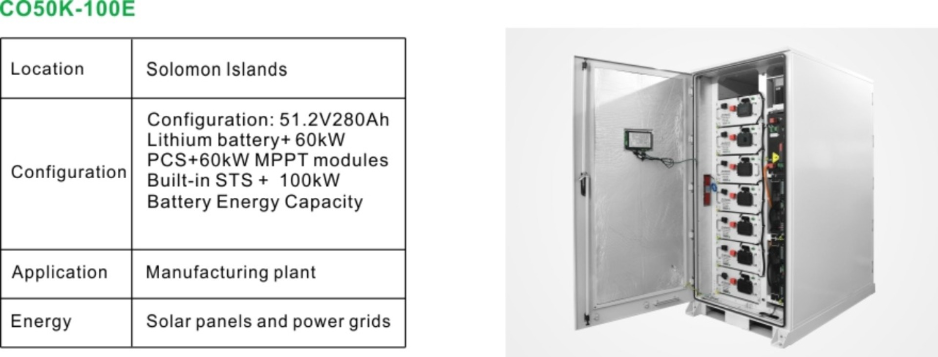 Nằm ở Nam Thái Bình Dương, quần đảo Solomon phụ thuộc rất nhiều vào dầu diesel nhập khẩu để sản xuất điện, dẫn đến chi phí điện cao, đặc biệt là trong giờ cao điểm, và lưới điện không ổn định, dễ bị mất điện và dao động điện áp. Các nhà máy sản xuất tại địa phương phải đối mặt với chi phí vận hành tăng cao, gián đoạn sản xuất và rủi ro an toàn từ các hệ thống lưu trữ năng lượng truyền thống như ắc quy chì-axit, vốn dễ bị quá nhiệt và đoản mạch. Để giải quyết những thách thức này, chúng tôi cung cấp giải pháp lưu trữ năng lượng thương mại và công nghiệp được tùy chỉnh, giúp khách hàng giảm chi phí năng lượng, ổn định nguồn cung cấp điện và nâng cao độ an toàn và độ tin cậy tổng thể.