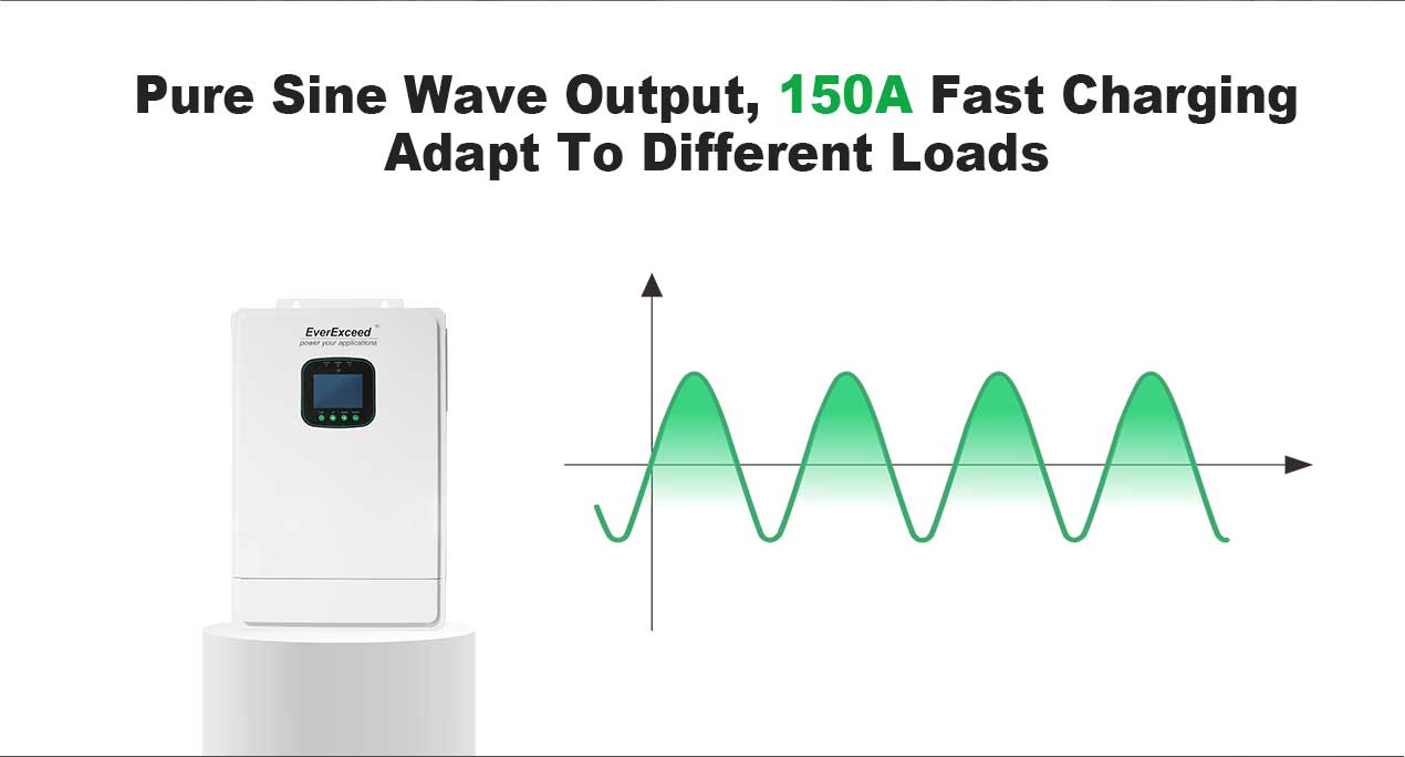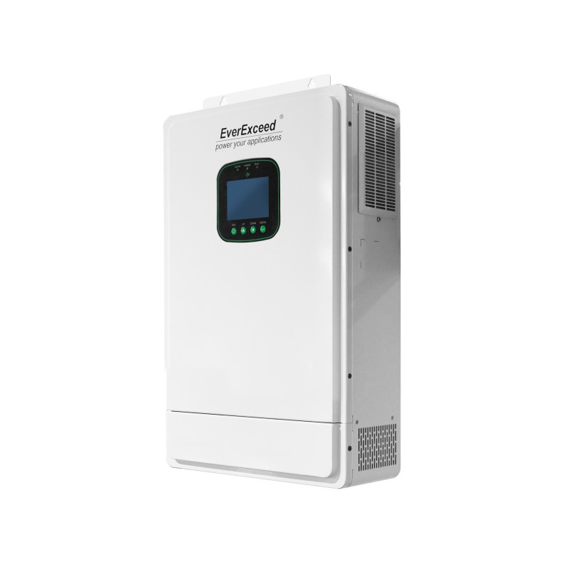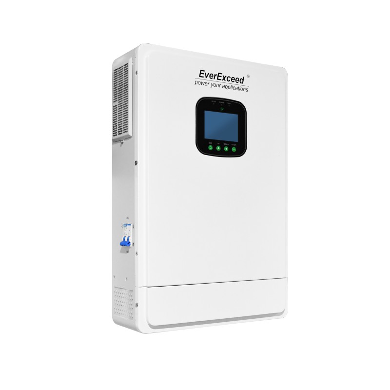 Bộ biến tần lai của EverExceed tích hợp liền mạch với hệ thống pin và năng lượng mặt trời dân dụng, cho phép quản lý tải thông minh và sử dụng năng lượng tối ưu.