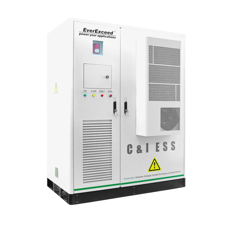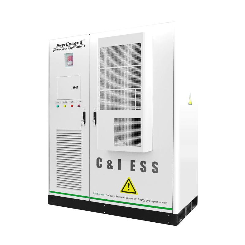 EverExceed All-in-one EverPower Industrial & Commercial ESS tích hợp toàn diện PCS, pin LiFePO4, BMS, PCS, EMS, hệ thống chữa cháy, hệ thống tản nhiệt trong tủ điện. Đây là giải pháp lưu trữ năng lượng dự phòng công suất lớn phục vụ khách hàng thương mại/công nghiệp cấp lưới điện I. Hệ thống lưu trữ năng lượng điện áp cao này mang lại tính linh hoạt cao nhất cho cả công trình lắp trên giá đỡ và tủ điện. Hệ thống này "An toàn hơn, Thông minh hơn, Đơn giản hơn" và phù hợp để giải quyết các vấn đề về điện tại các trạm biến áp, khu vực ngoài trời, lưới điện siêu nhỏ + lưu trữ năng lượng, nhà máy nhỏ, trung tâm mua sắm, trạm sạc lưu trữ năng lượng mặt trời, v.v.
