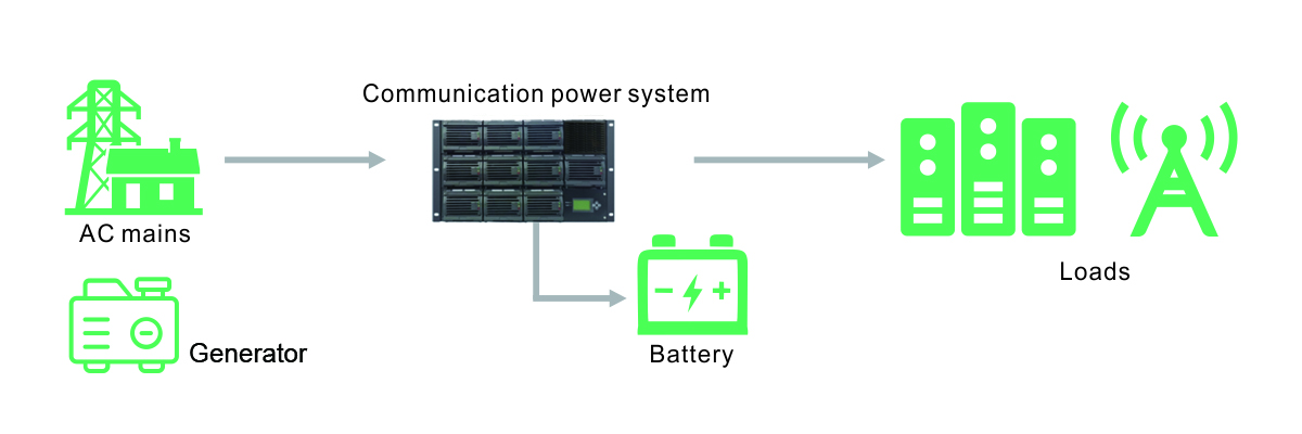 Được sử dụng rộng rãi trong lĩnh vực truyền thông và công nghiệp. Toàn bộ công nghệ nguồn truyền thông của nó chuyển đổi dòng điện xoay chiều thành dòng điện một chiều để cung cấp điện cho tải DC, kết nối bộ pin vào hệ thống điện để sạc pin và phát hiện trạng thái bộ pin. Ba cổng mô-đun chỉnh lưu có thể hoán đổi nóng có thể tạo thành hệ thống dự phòng N+1, cung cấp khả năng chịu lỗi cho tải. Để thích ứng với các hệ thống cung cấp điện bên ngoài khác nhau, hệ thống giám sát được trang bị 45 tùy chọn cảnh báo khác nhau. Màn hình giám sát có thể hiển thị thông tin cảnh báo hiện tại, truy vấn thông tin cảnh báo lịch sử và hỗ trợ điều khiển từ xa RS485/SNMP.