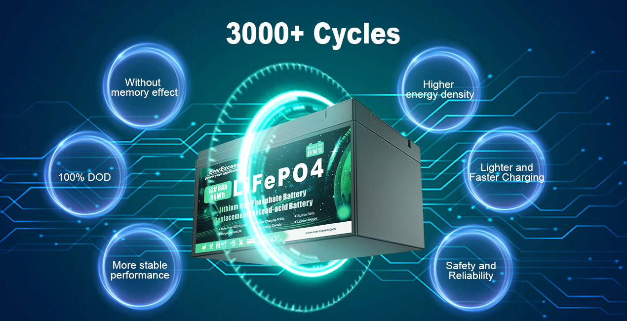 Ứng dụng rộng rãi: Pin lithium EverExceed 12V 8Ah được sử dụng rộng rãi trong nhiều ứng dụng, chẳng hạn như xe RV, UPS, cắm trại ngoài trời, máy dò cá, nguồn điện dự phòng, xe buggy, máy cắt cỏ, tấm pin mặt trời, động cơ kéo thuyền, đèn chiếu sáng khẩn cấp, hệ thống điện độc lập, hệ thống điện lưới hỗn hợp và nhiều lĩnh vực khác.