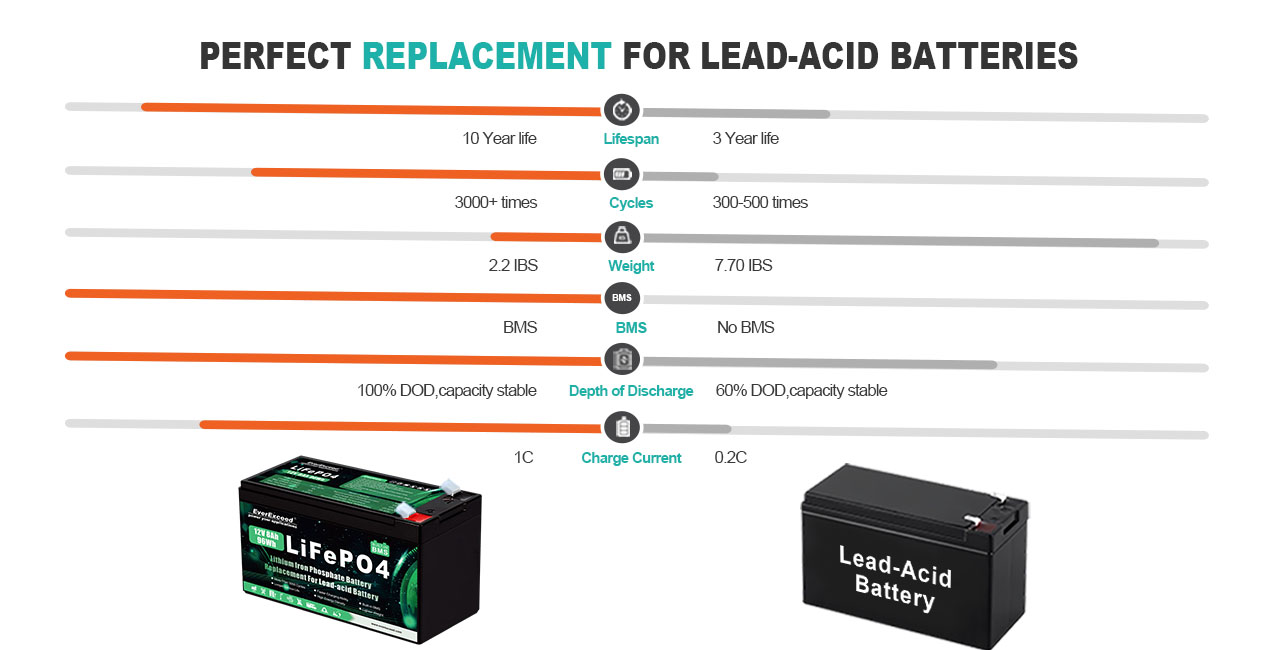 Nhỏ hơn, nhẹ hơn và sạc nhanh hơn: pin sạc 12V 8Ah chỉ nặng 1 kg, bằng một nửa trọng lượng của pin axit chì cùng dung lượng. Pin axit chì thường được sạc ở tốc độ 0,2°C, nhưng pin 12V của chúng tôi có thể được sạc ở tốc độ lên đến 1°C. Pin LiFePO4 12V 8Ah dễ dàng di chuyển và lắp đặt, hiệu quả hơn, mang lại nhiều tiện lợi hơn cho cuộc sống của bạn.