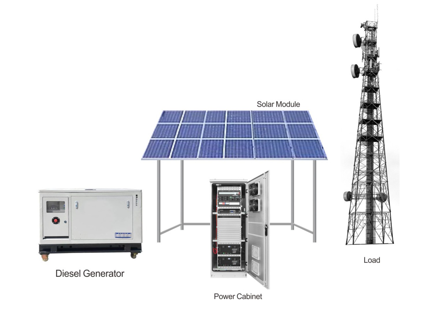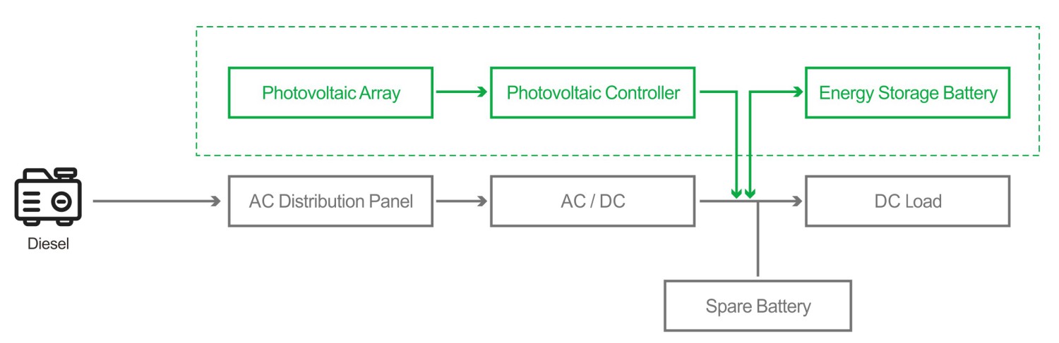 Kiến trúc lai này (PV + Pin + Dầu diesel) đảm bảo nguồn điện cho trạm gốc sạch, ổn định và tiết kiệm chi phí.