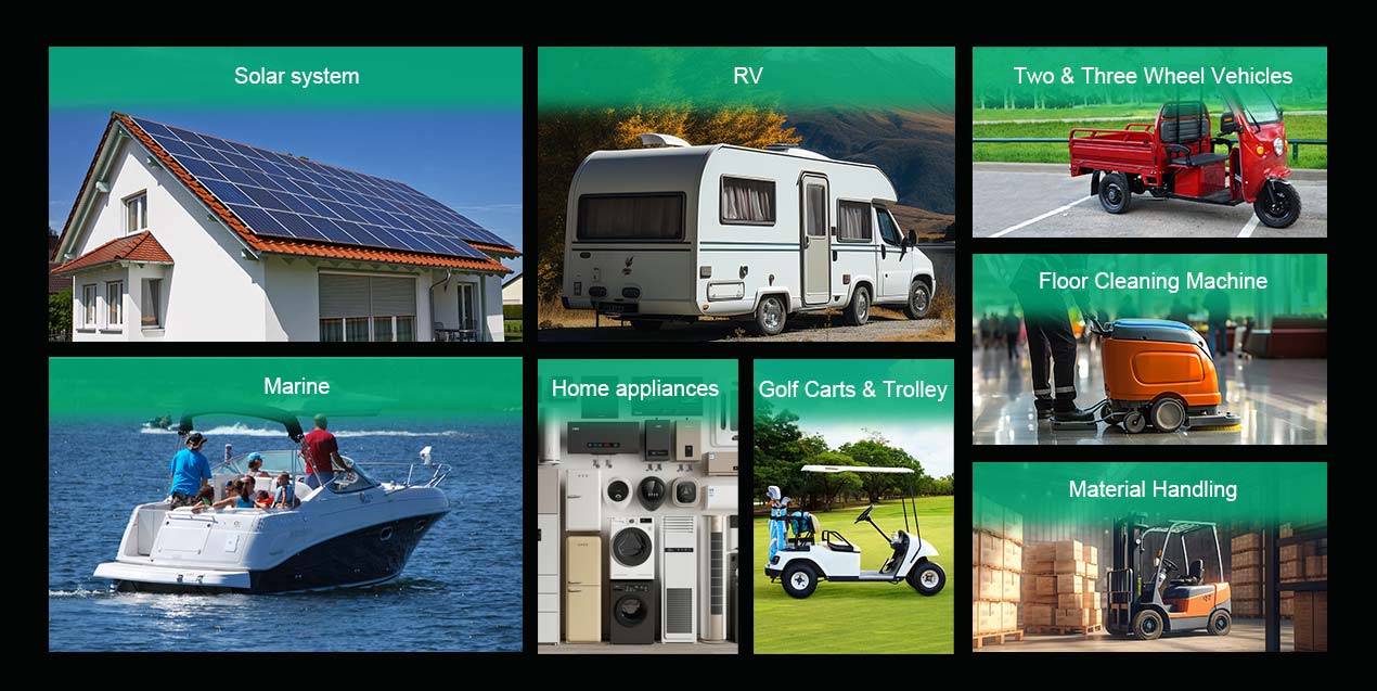 Pin dung lượng lớn, thích hợp sử dụng trong xe RV, cắm trại, du thuyền, thuyền đánh cá, xe golf, hệ thống năng lượng mặt trời, v.v.