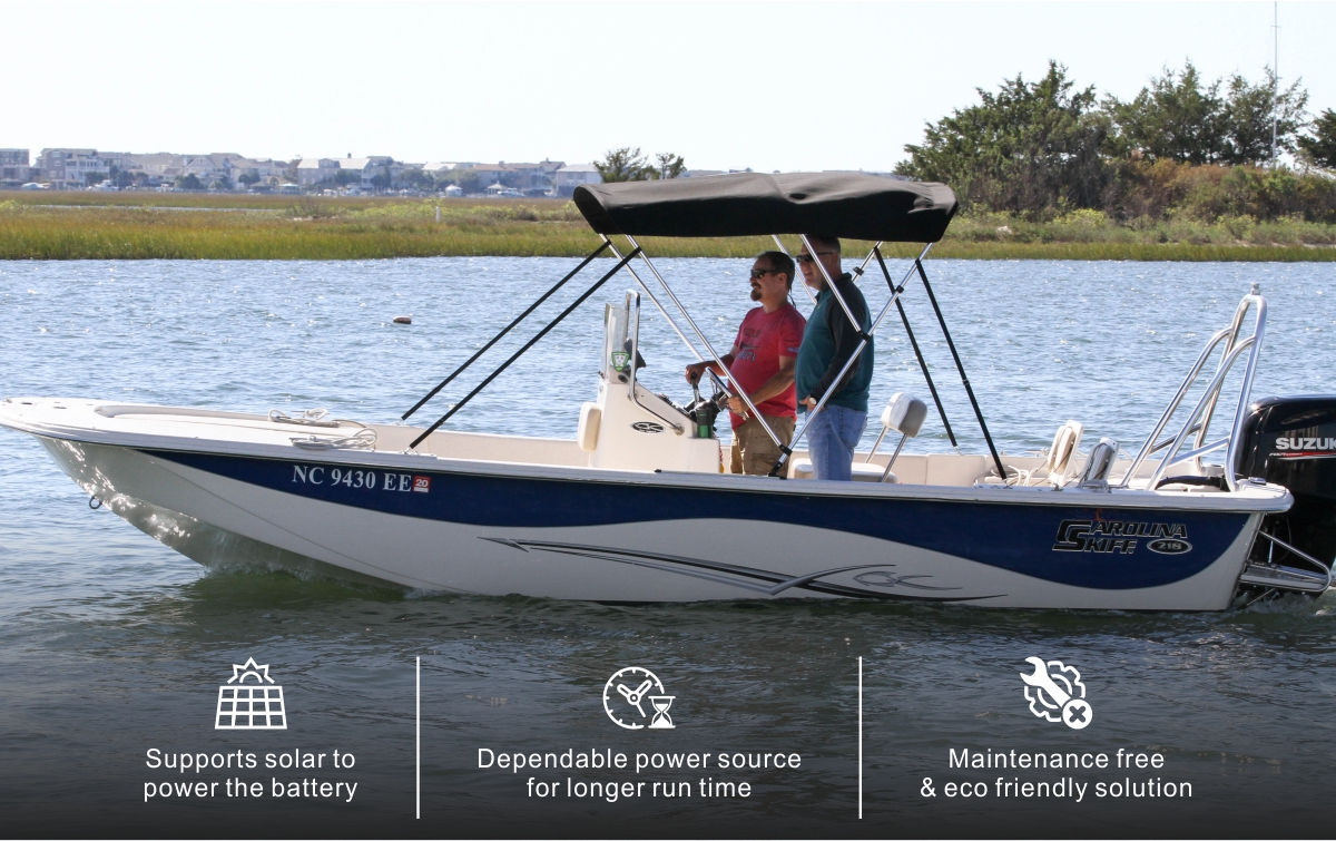 | Cung cấp 100% năng lượng có thể sử dụng, vì vậy đối với những chuyến đi dài hơn, bạn có thể xả pin nhiều hơn so với loại axit chì truyền thống, giúp tăng hiệu quả cho những chuyến đi dài hơn. |